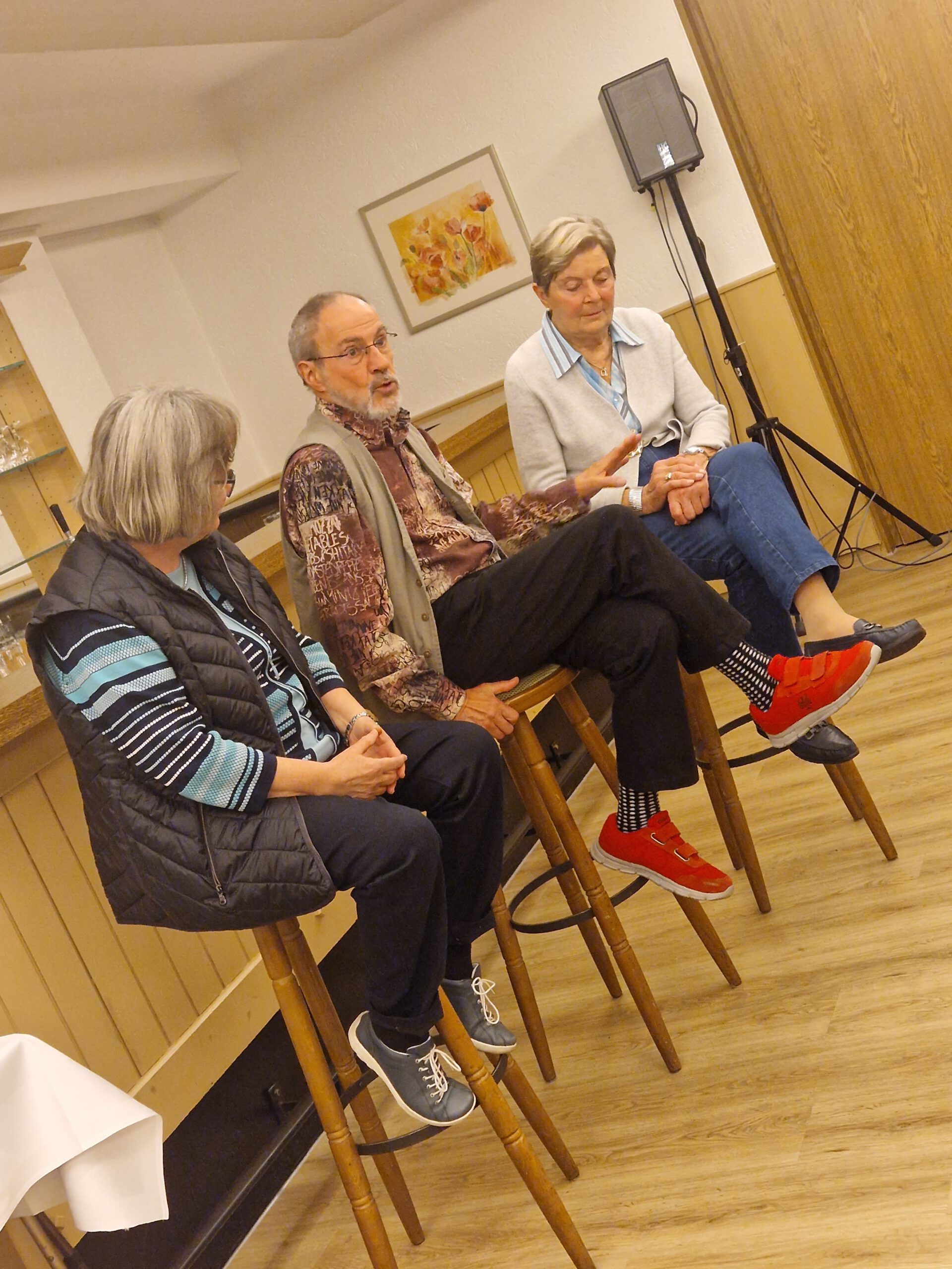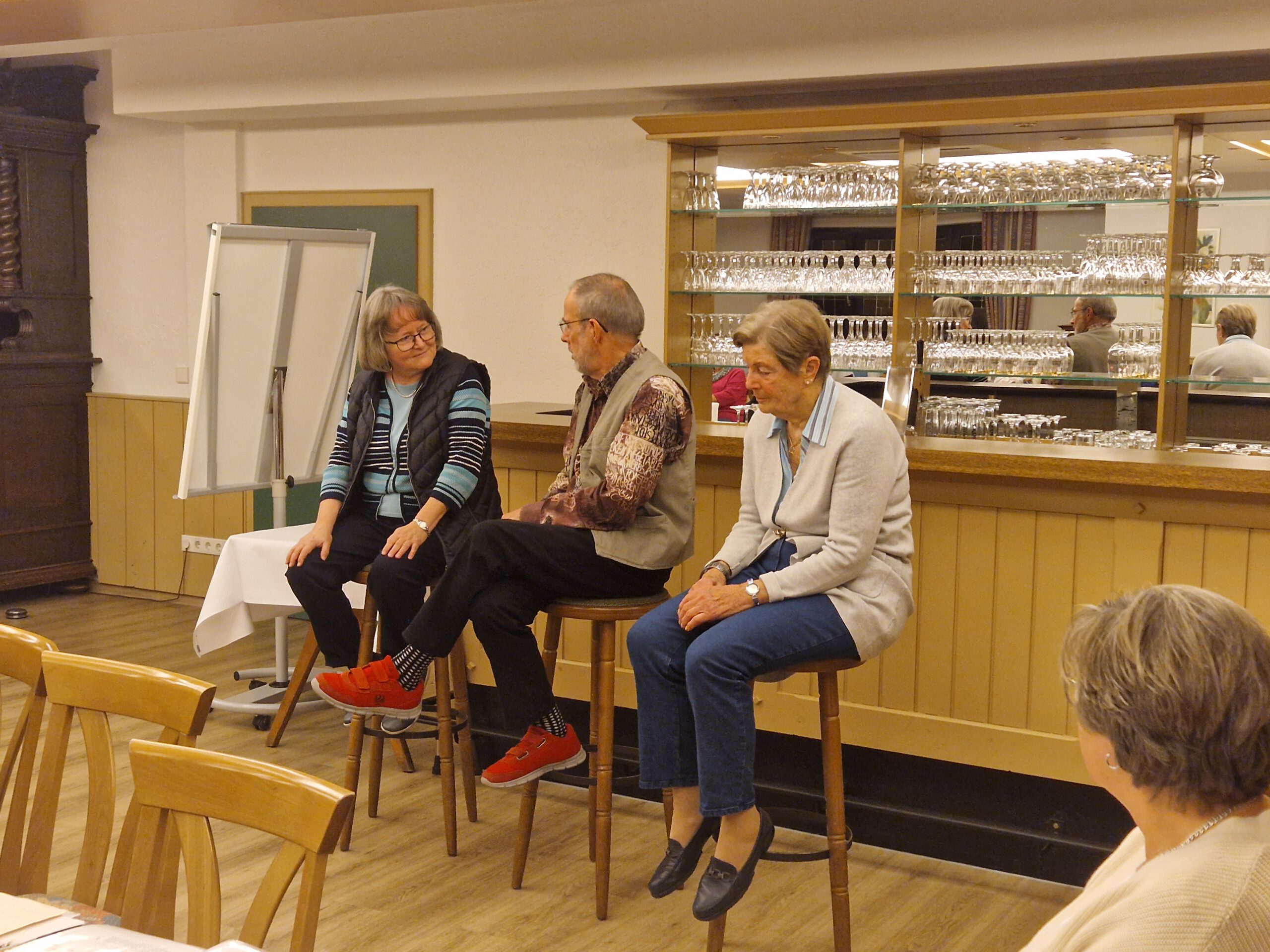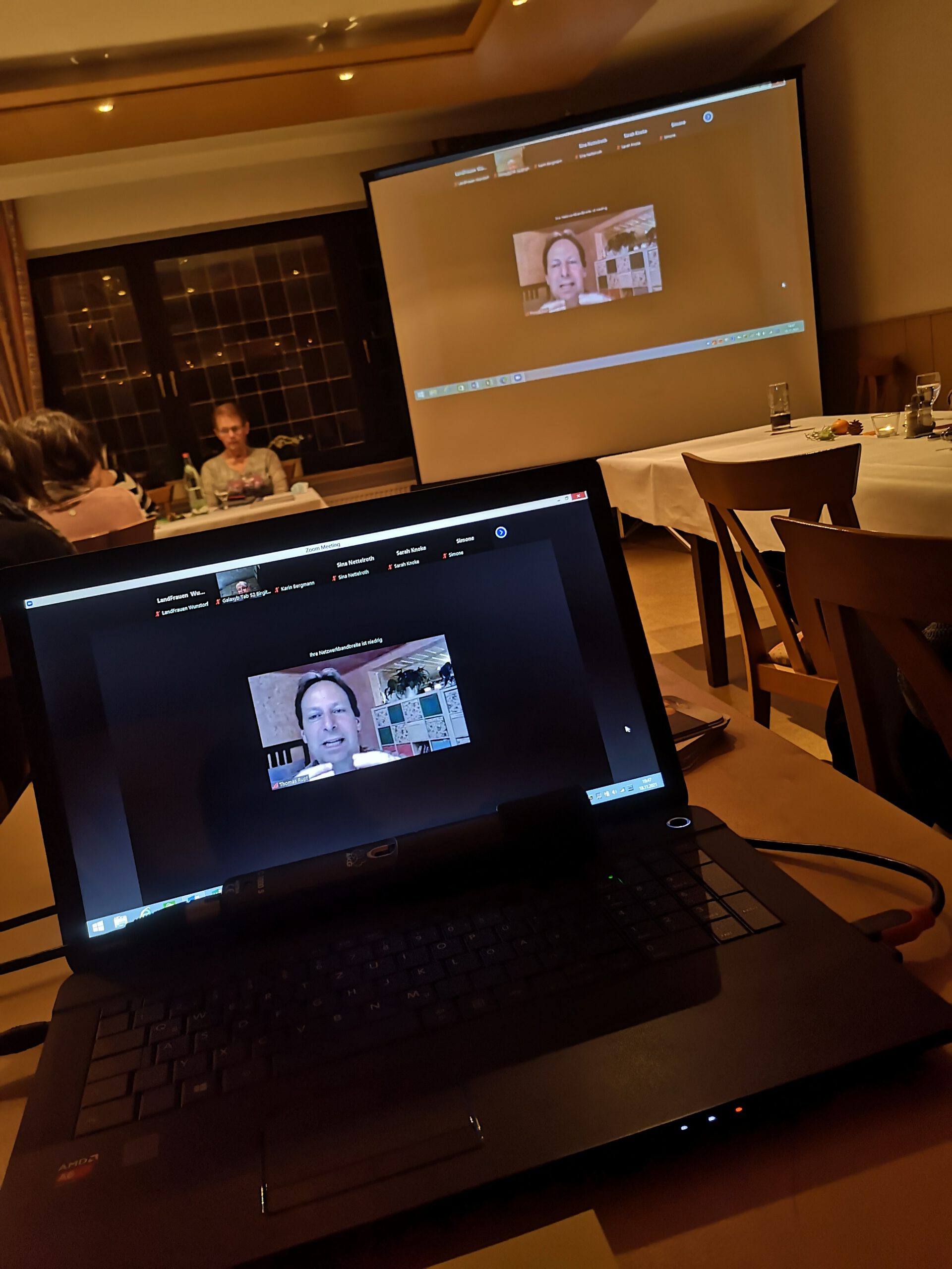Der Vortrag Machtkampf der (Enkel)-Kinder mit Herrn Rupf war in präsenz geplant und angemeldet. Leider kam am morgen des Vortragstages die Information vom Referenten, dass er nicht kommen könnte. Was nun? Absagen? Oder es Hybrid versuchen? Da nicht abgesagt werden sollte, wurde alles dran gesetzt den Vortrag im Hybrid-Style durchzuführen. Nachdem Laptop, Beamer, wlan und Leinwand organisiert und der Ton geregelt war, konnte es pünktlich los gehen. Der Vortrag ist gut angekommen und trotz kleinen Hängern, konnte man dem Referenten gut folgen. Ein positiver Nebeneffekt war, dass sich weitere Frauen und Männer von zu Hause aus zuschalten konnten, die sonst an diesem Vortrag nicht hätten teilnehmen können. Vielleicht machen wir das jetzt öfters, aber dann sicher länger geplant! 🙂