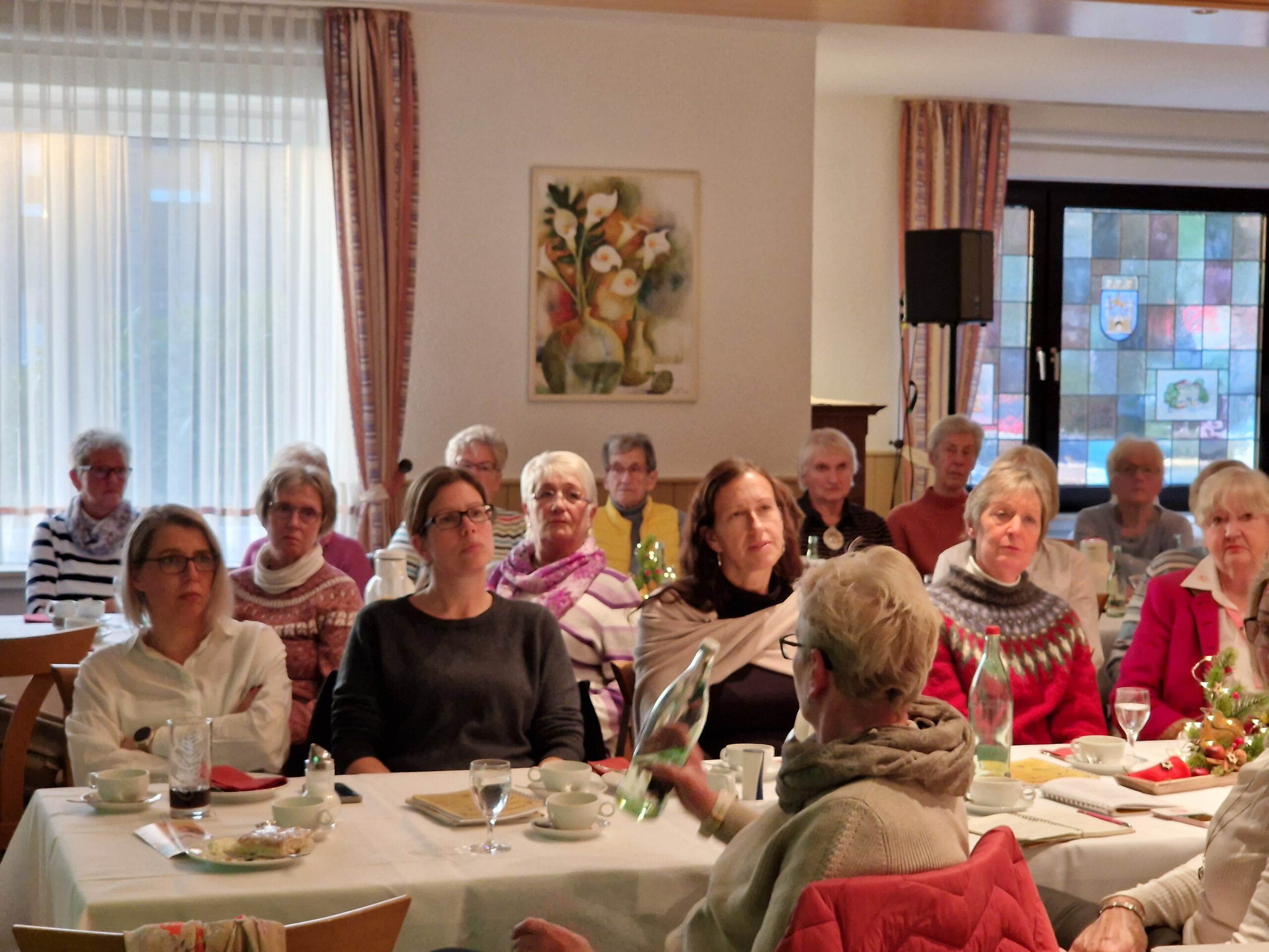 Die Referentin, Frau Kuhlmann startete mit ihrem Vortrag „ Reden und Reden lassen“. Sie erklärte die Macht der Worte. Sie können verletzen, aufbauen, schmeicheln, animieren, zu ungeahnten Fähigkeiten beflügeln. An Hand anschaulicher Geschichten und Beispielen zeigte sie verschiedene Szenarien auf, in der sich jeder von den Zuhörern wiederfinden konnte. Mit viel Applaus und guten Wünschen wurde Frau Kuhlmann verabschiedet.