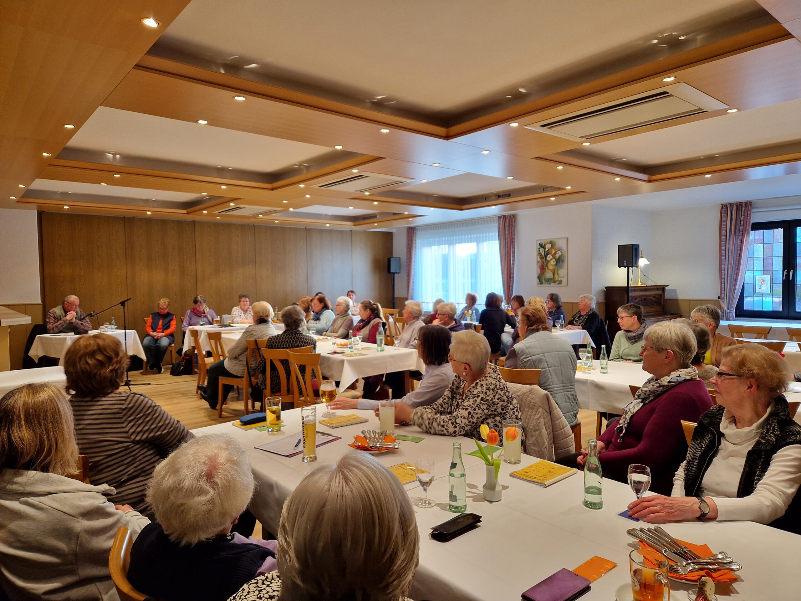 Mit knapp 90 LandFrauen war die diesjährigen Mitgliederversammlung sehr gut besucht. Als erste Versammlung in 2023 war viel zu besprechen und auch die Themenpunkte mussten abgearbeitet werden. Ganz besonderst sind immer die Ehrungen. Dieses Jahr gab es sieben für 25 jährige Mitgliedschaft und sogar vier für 50 Jahre. Eine besondere Ehrung für langjähriges ehrenamtliches Engagement konnte an Marita Tegtmeyer verliehen werden. Um auch dem persönlichen Austausch nicht zu kurz kommen zu lassen, wurde während und nach dem Essen geklöhnt. Als letztes wurde über die nächsten Termine und Aktionen gesprochen und nach Vorschlägen für das neue Programm gefragt.